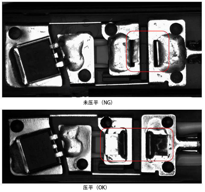 2、焊前检测:在正式焊接之前,需要视觉系统拍照检测“汇流条”是否压平了。如果没有压平,视觉系统及时报警,在焊前将“汇流条”压平,确保每次焊接前“汇流条”都是平的。