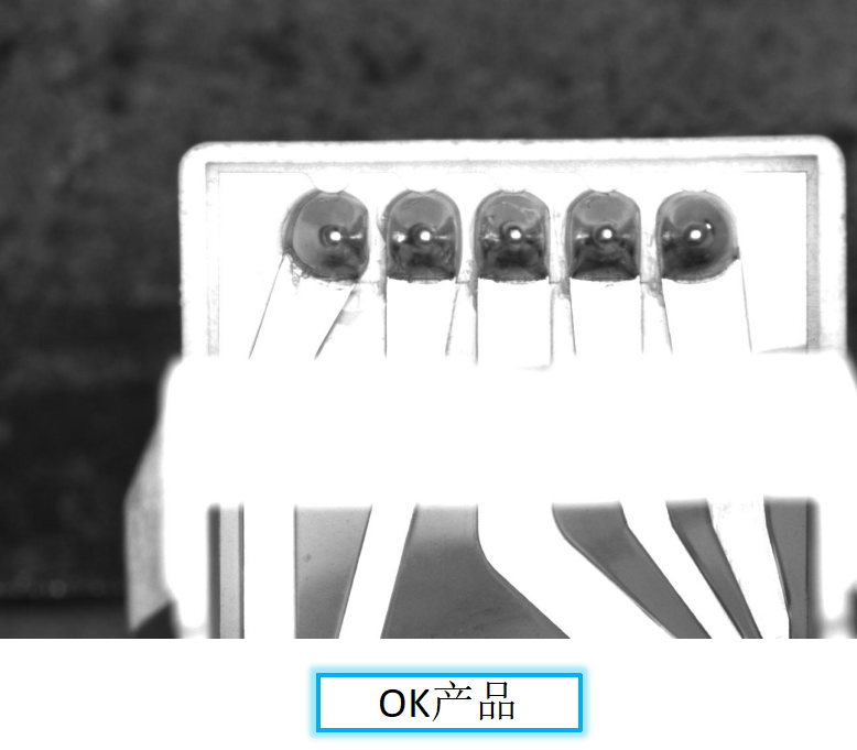 本方案采用两个固定相机,一个拍摄正面、一个拍摄侧面,以目前图像效果来看,可以检测缺焊、连焊等不良。