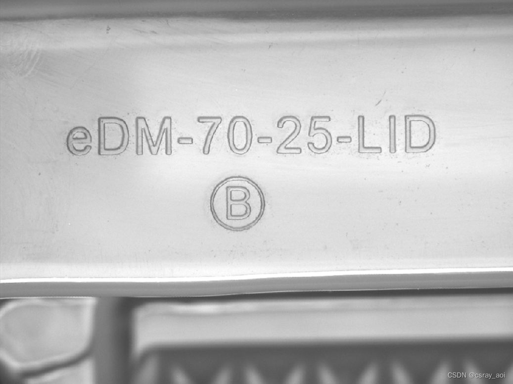 因硬盘容器上盖的表面是比较平整的面,使用CSR-90-ICOb光源,从上往下直射照射,字符的边缘将被表现为黑色,而其它地方则表现为白色,利用字符边缘,有利于字符的识别。