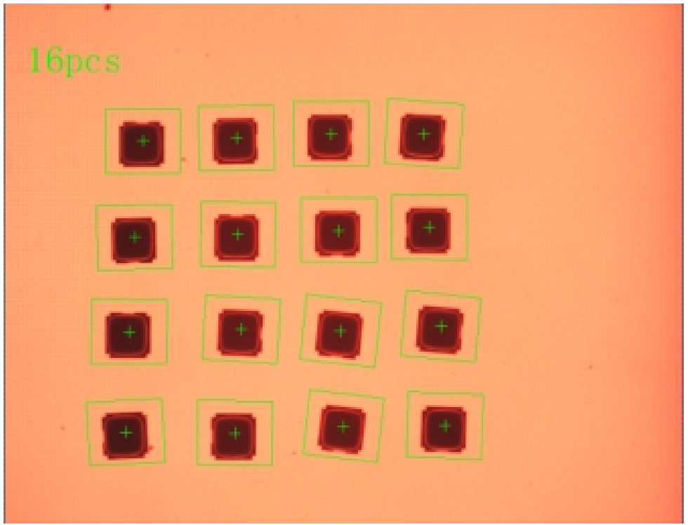 使用康耐德机器视觉aoi检测系统的彩色转灰功能,提取零件几何形状特征,包括面积、轮廓、重心。根据零件特征值判断图片内零件数量。